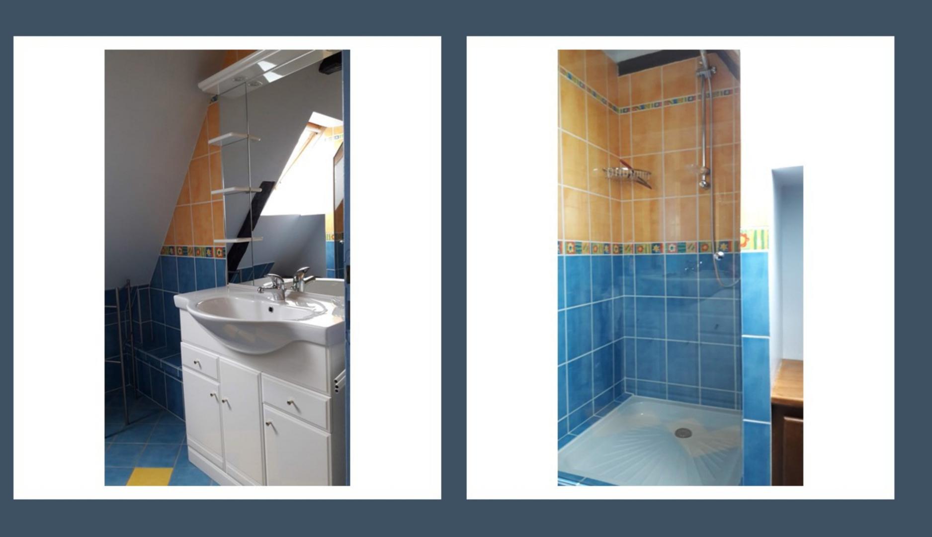 A l'étage il y a deux grandes chambres avec lit de 140, un palier avec lit de 90, une salle d’eau et un WC indépendant.